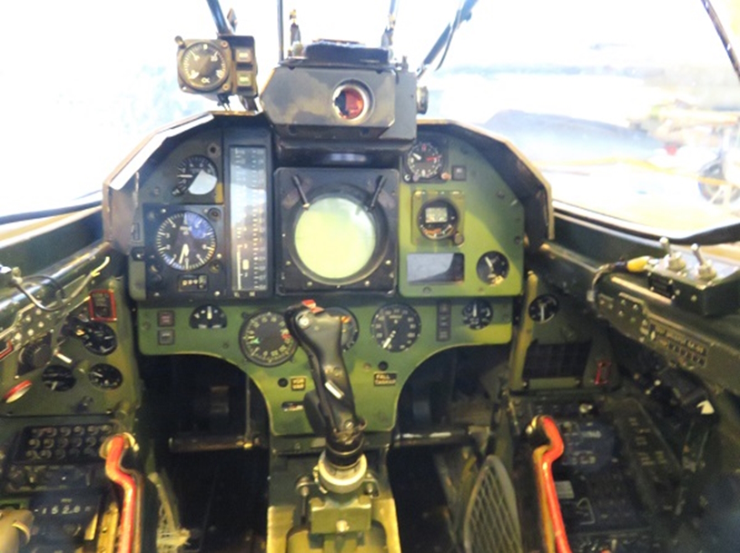 操縦席から計器盤を拝観しました。アナログ式の計器盤には、