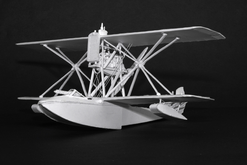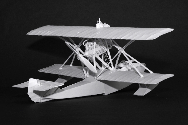 1916年にドイツ帝国のハンザブランデンブルグ社が開発しオーストリア・ハンガリー帝国が、アドリア海でイタリアに対抗した戦闘飛行艇「ハンザブランデンブルグCC」の1/32模型を厚手のコピー用紙を主な材料に作りました。紅の豚のラストでライバルのマッキM.5とともに回想シーンに登場しています。