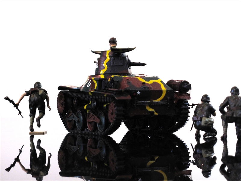 「○×上等兵、この先を見てこい。□▽伍長は援護しろ!」 、、、てな感じでしょうか。小銃を持つ兵士はタミヤ製、それ以外はファインモールド製。