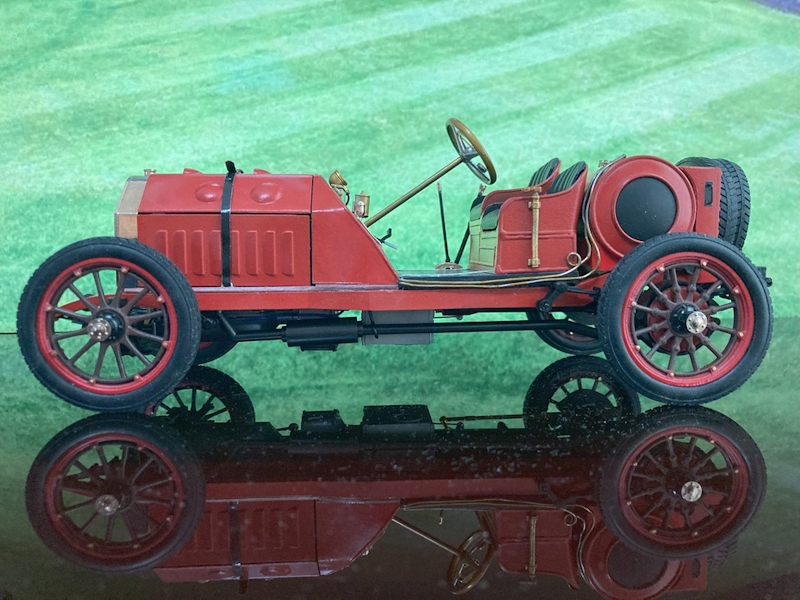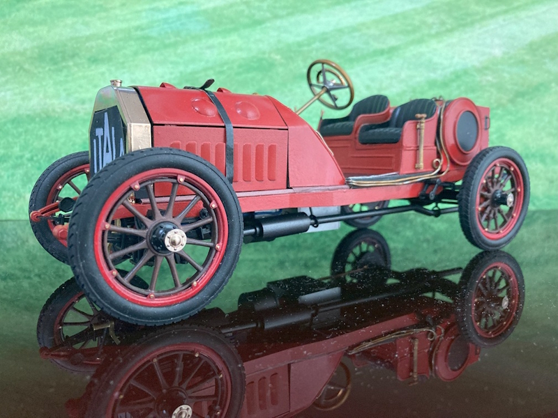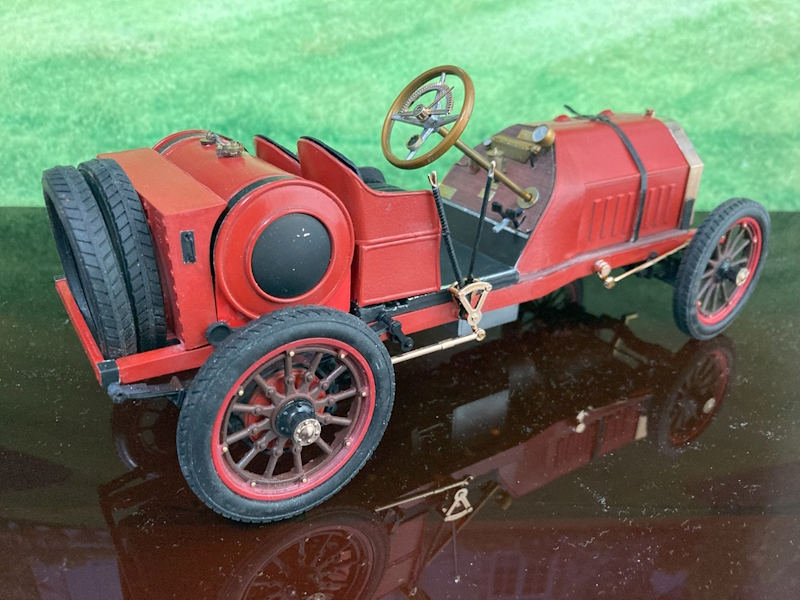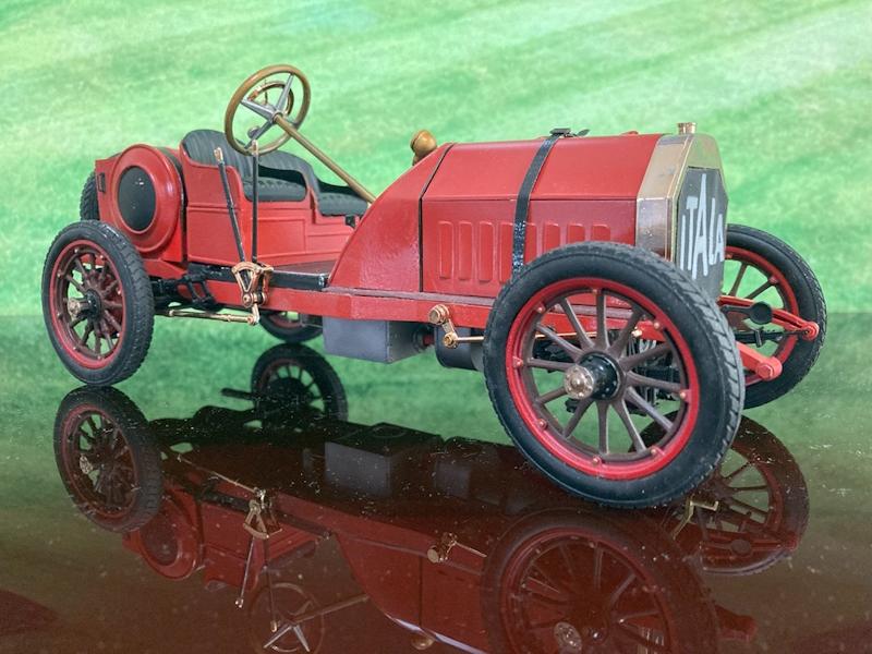 キットは、ボックスアートから”120HP“と呼ばれたモデルを元にしていると思われます。英国National Motor Museumのオンライン画像アーカイブで何枚かの実車画像が見つかります。画像解説によると1907年のCoppa della Velocitaで勝利した個体とのこと。またこの実車は、驚くべきことに今も走行可能な状態で保存されているようです(デモ走行している実車の動画がネット上で公開されています)。