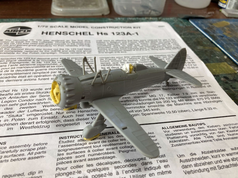 中古で買ってあったHs-123A1を作ってみました。エアフィックスの古いキットはディティールやモールド表現はこそ今となっては古めかしいものですが、