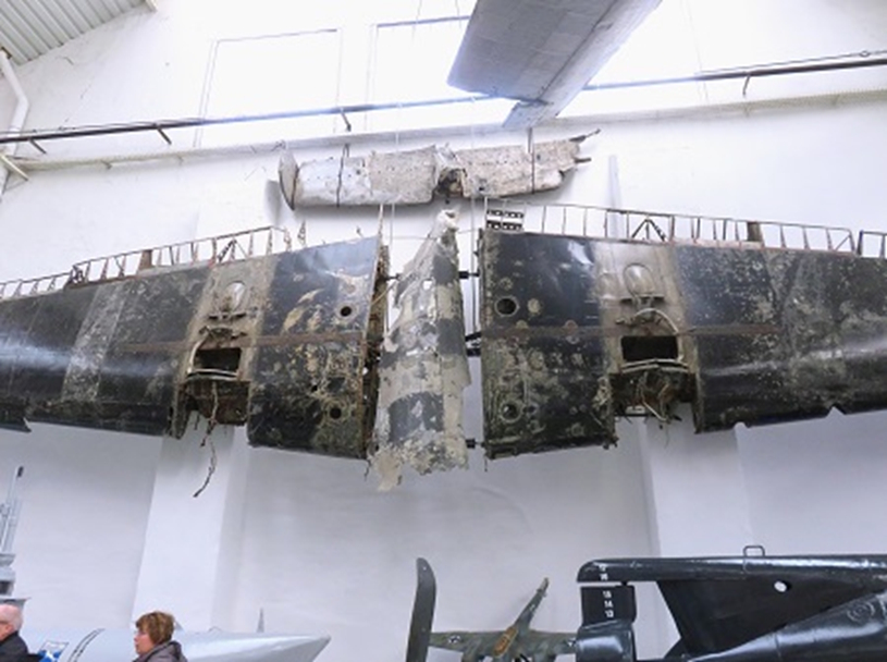 シュパイアー技術博物館に展示のMe110Dの主翼と水平尾翼。2020年2月撮影。