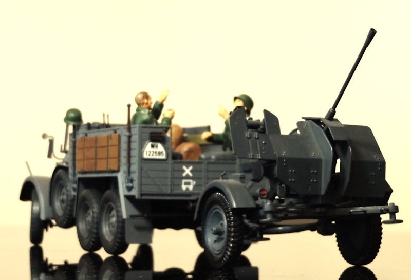 戦争の初期では対戦車砲を牽引して進撃していたのが、対空機関砲を牽引すると雰囲気も守勢のようになるので不思議なもんです