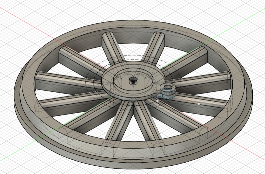 主車輪は 円板を糸鋸で切り抜くよう指示されていますが、これも3Dプリンタでは一体で作ってしまいます。