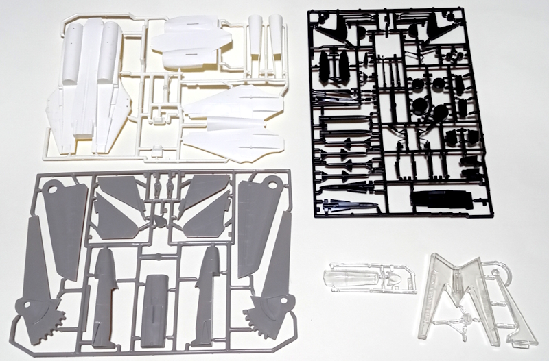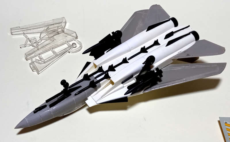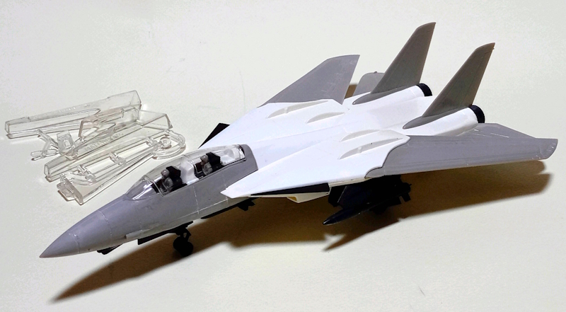 F-14試作機をモデル化したのか、ウィンググローブが試作形状(?)だったりフェニックス用胴体パレットが無かったりしますが、組み立ててみると、とりあえずトムキャットです。グローブスティフナーも試作機型なのか背が高く違和感ありますが、逆に他キットに無いので新鮮です。