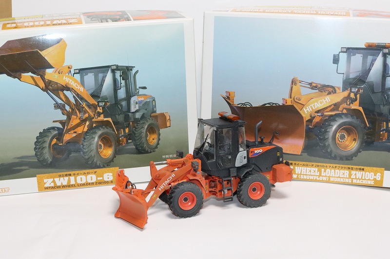 上の写真の左のパッケージが、元となった日立建機 ホイールローダ ZW100-6のキットのものです。