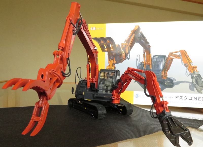 製作にあたっては、建機などじっくり見たことがなかったので、近所の建設現場を見回って、パワーショベルの運転台や腕の油圧機構周りを参考にしました。