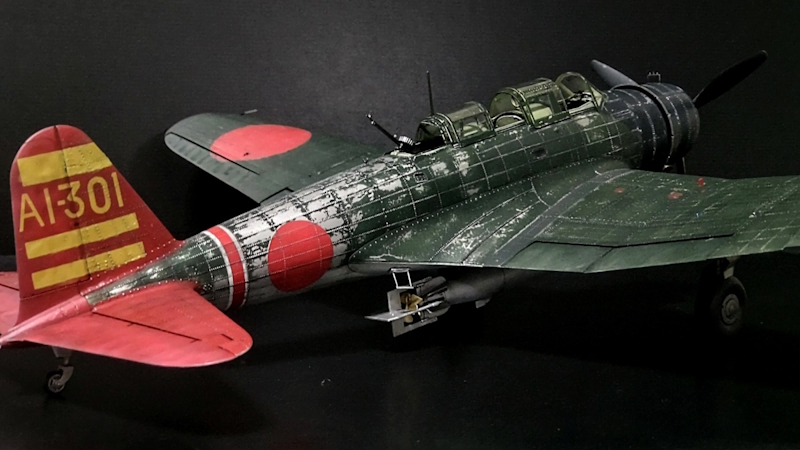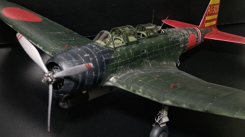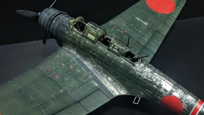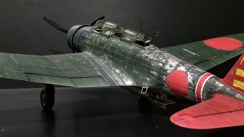 塗装は某雑誌の作例と海外モデラーの製作動画を参考にしました。いずれも著しい剥がれを強調していたので私も控え目に剥がして塗りました。ただ日の丸だけは傷をつけたり退色させたりはしたくないので綺麗に塗りました。