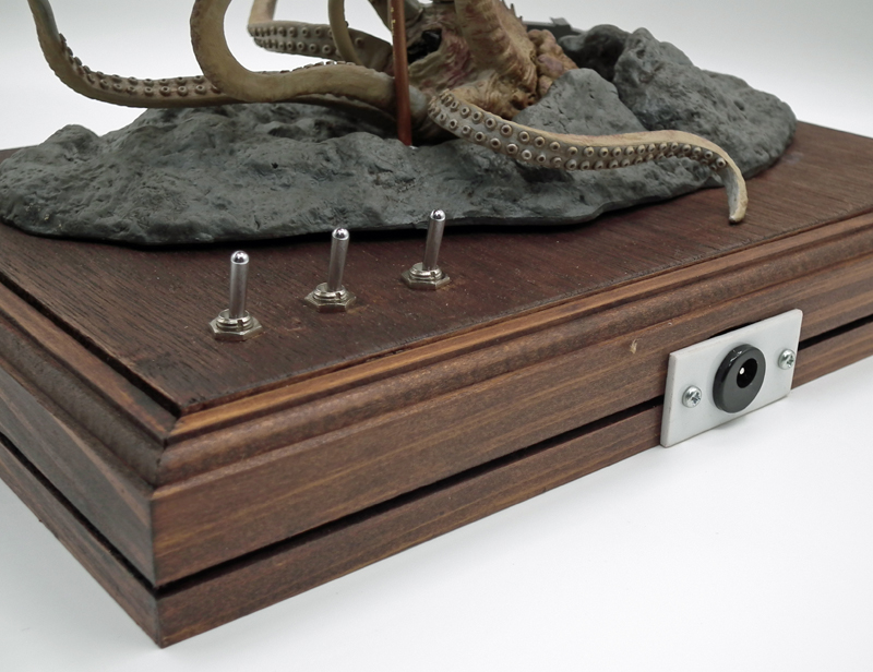 ネモ艦長のキャビン、キャビン展望窓外側のライト、操舵室照明と前照灯の3系統で、それぞれ別々にON/OFFできるようにトグルスイッチを介しました。