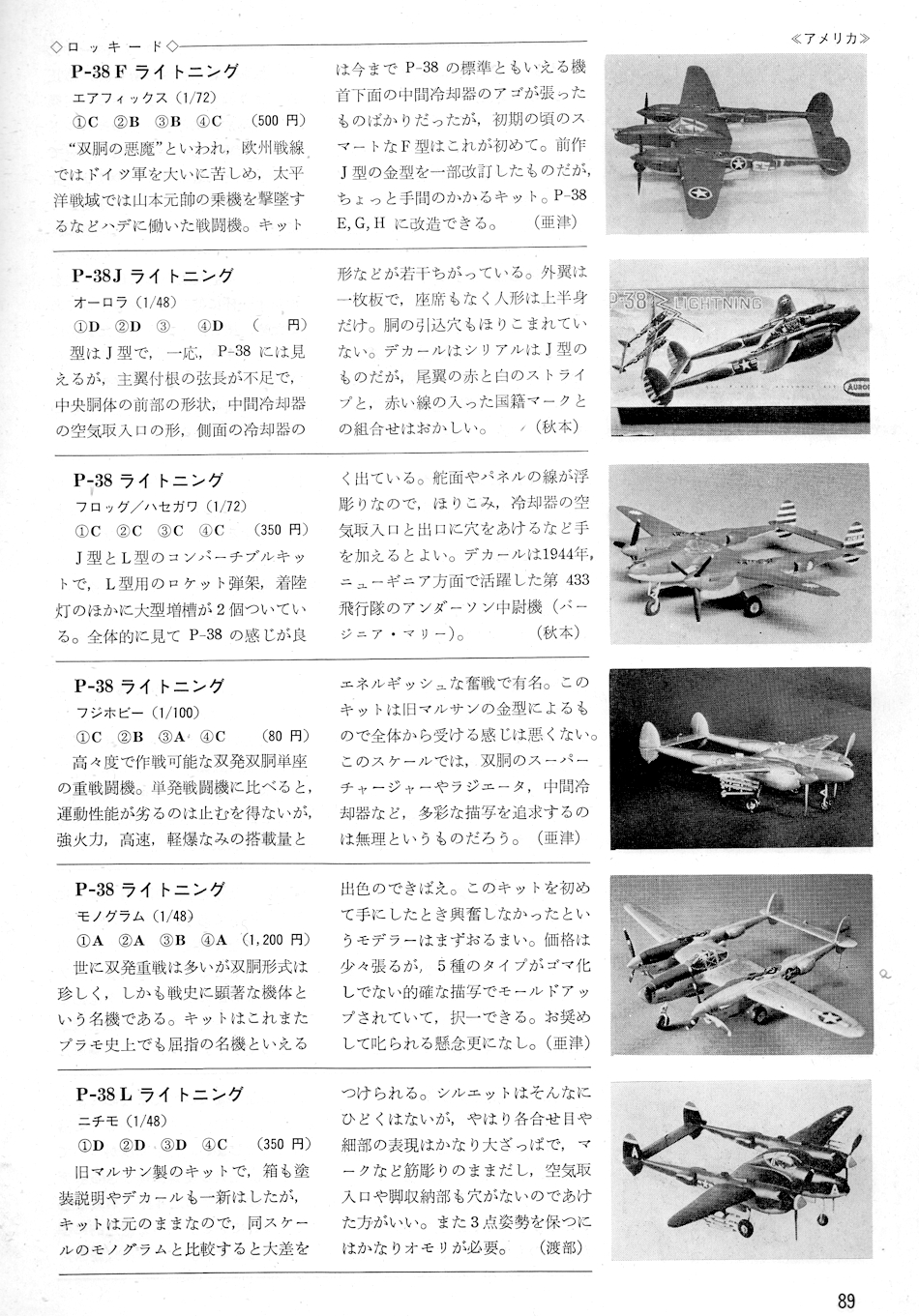 | (第7回)1966年号その1 (1p~24p) 第2次大戦アメリカ戦闘機 P-38ライトニング、カーチスP-40 |