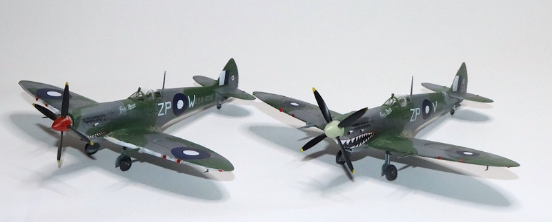 | シャークマウス小の2機を並べてみました。左がハセガワのZP◎F、右がエデュアルドのZP◎W。このころはスピンナーがレッドです。 |