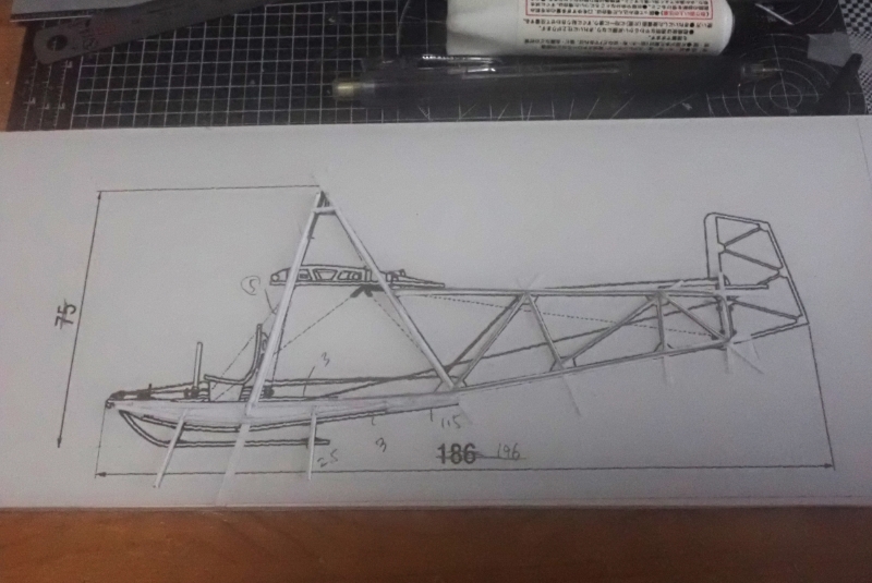 NETで見つけた側面図を基に胴体のトラスを組んでいきます。