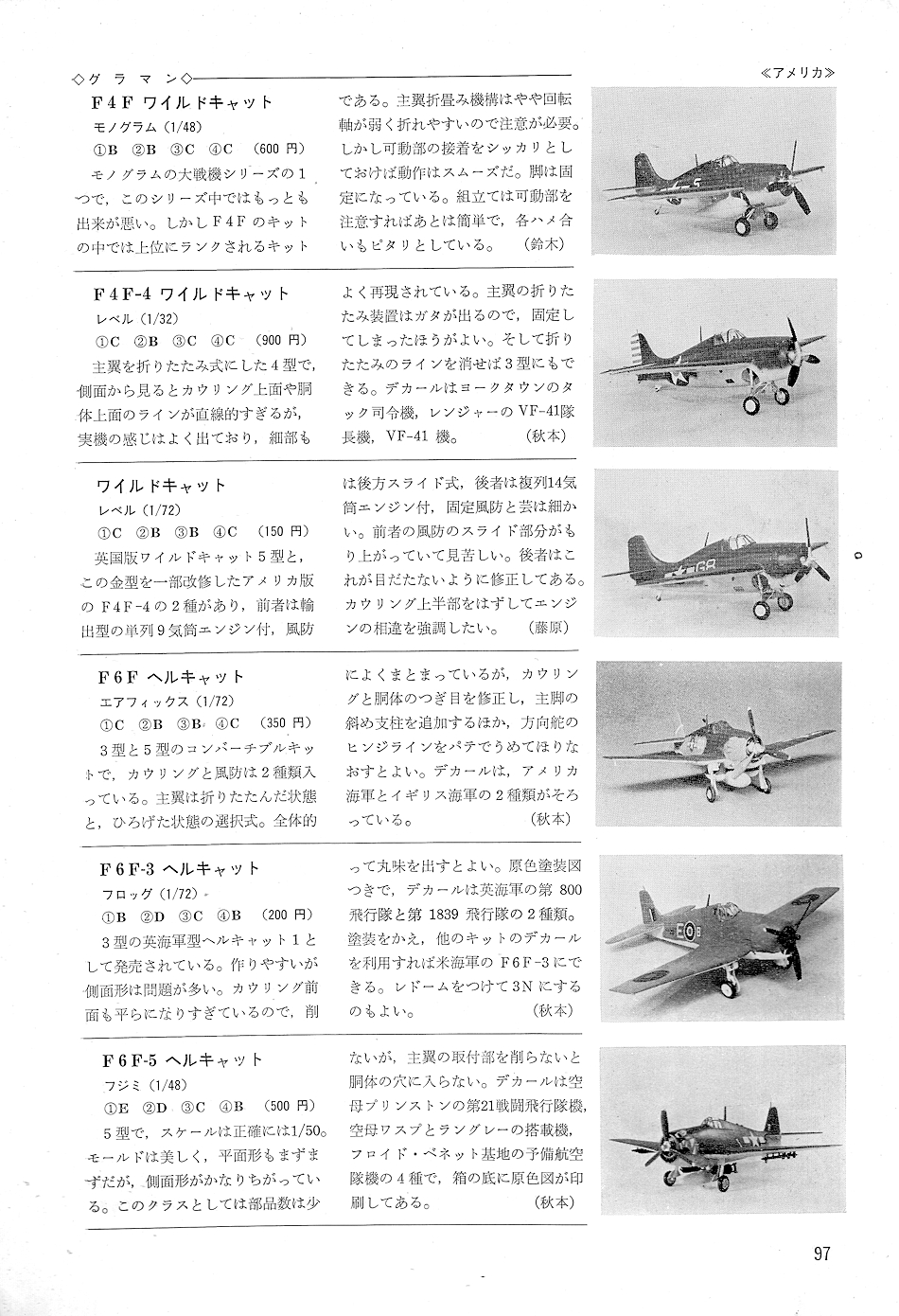 | (第9回)1966年号その3 (48p~73p) 第2次大戦アメリカ戦闘機 海軍機 「グラマン F-4F ワイルドキャット」、「グラマン F-6Fヘルキャット」、「チャンスボート F-4Uコルセア」 |