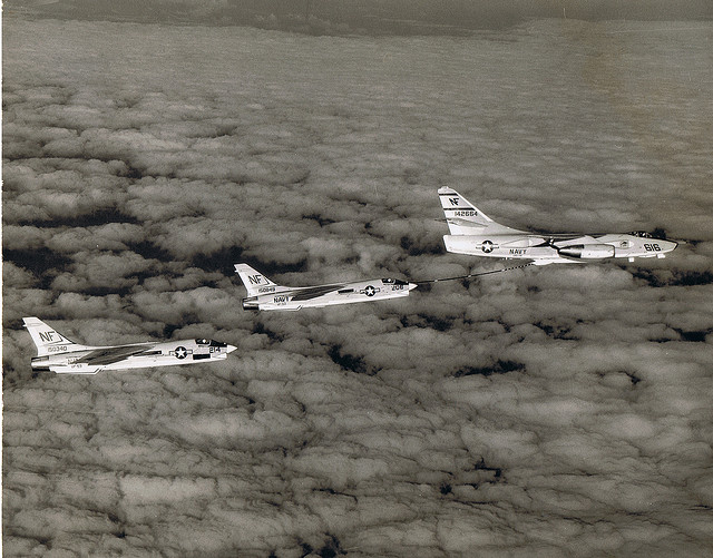 VQ-130のEAK-3Bから給油を受けるVF-53のF-8J
