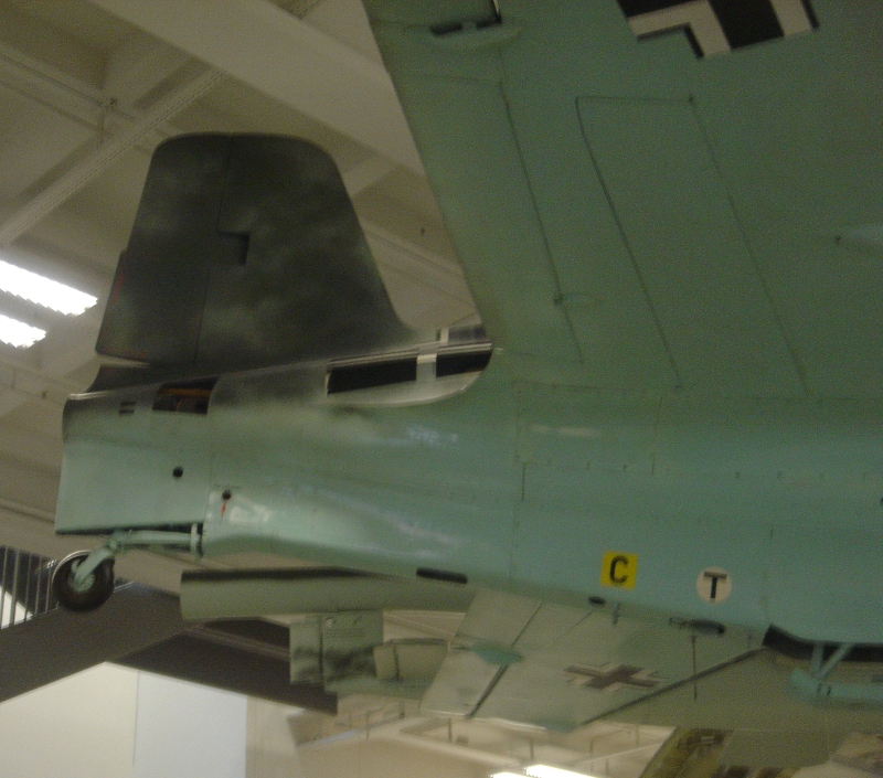 写真3 胴体および主翼下面 主翼スラット、主翼付け根の機銃Mk108 30mm砲が見て取れる。