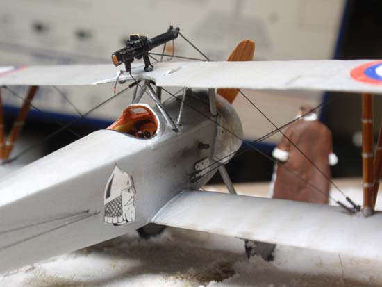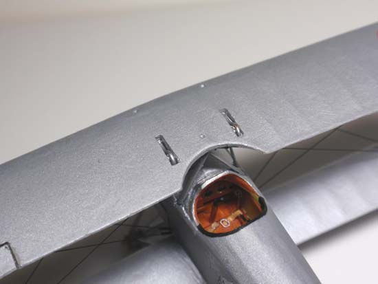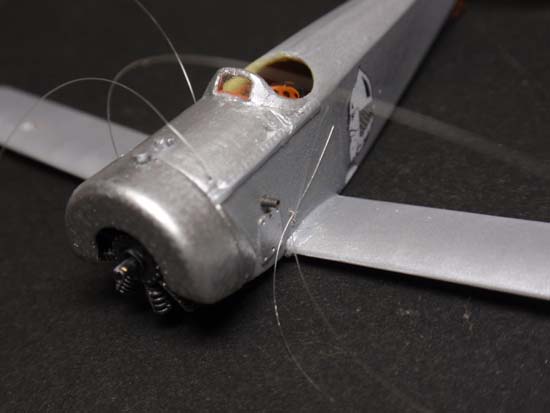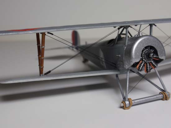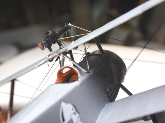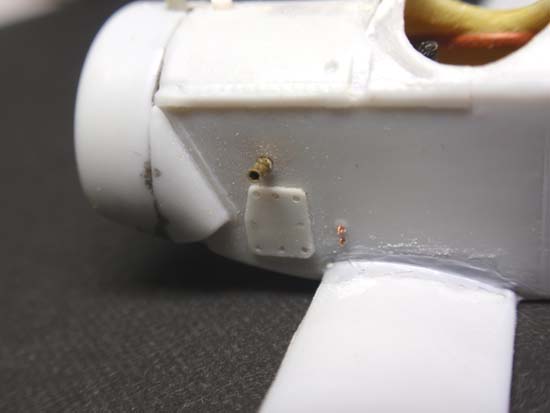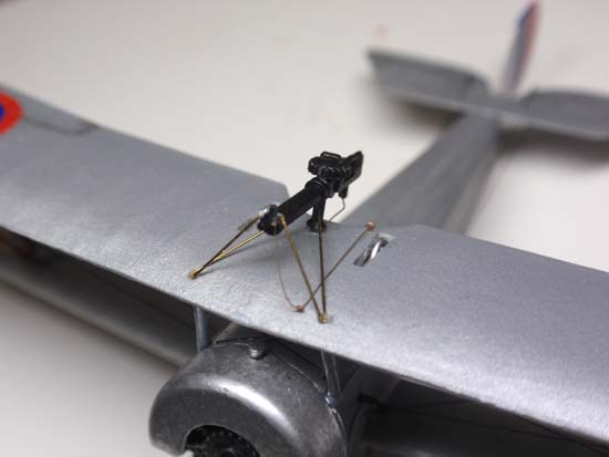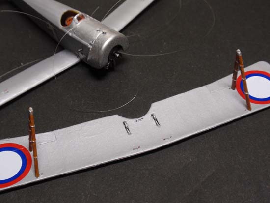ドイツ機やフランス機によく見られる装置です。キットはモールドで再現してありましたが、目立つところでもあり、太めの銅線で作ってみました。
