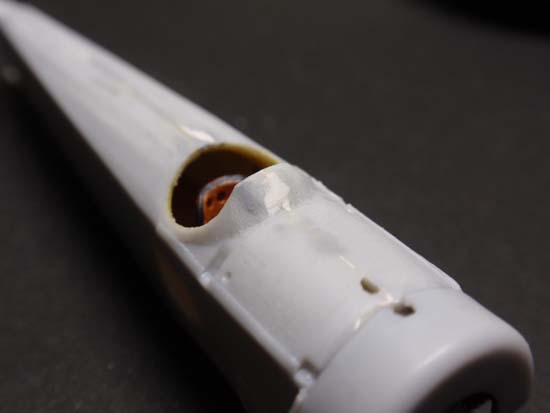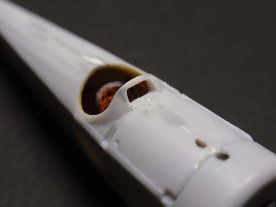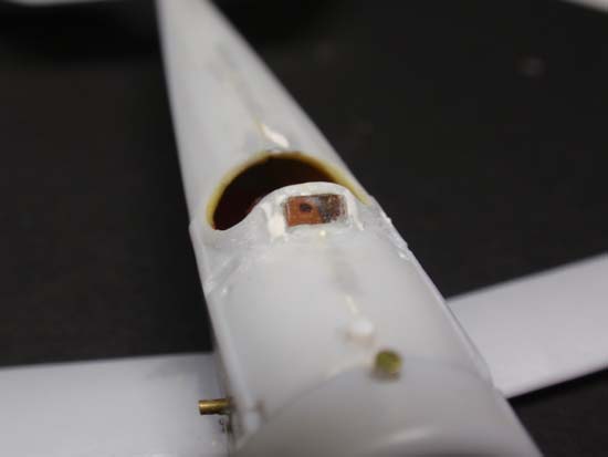 機首は整備用のパネルをプラ版で張り、排気管を真鍮管にしました。