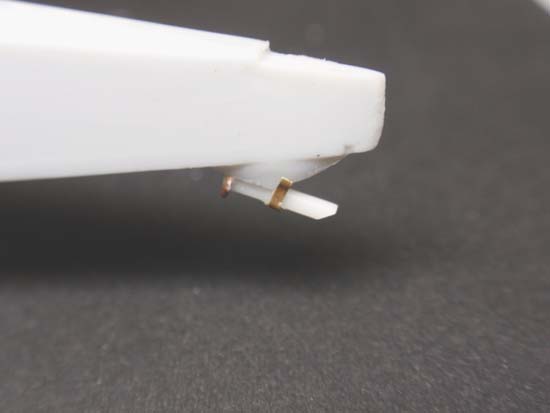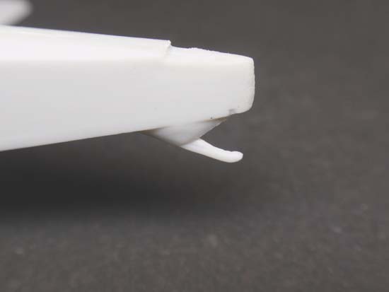 尾脚も胴体と一体モールドでボテっした感が否めないので、一旦切り離してプラの角棒を接着し、ジャンクパーツで固定しました。
