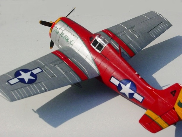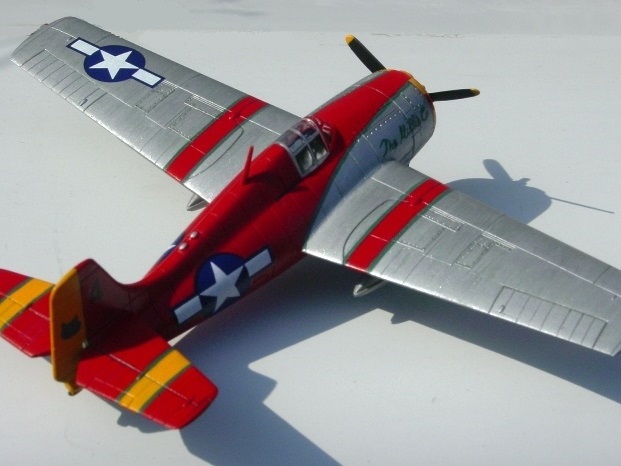 さて、真っ赤なムスタングは誤りと言われながらも、一度は塗ってみたい塗装だ。とはいえ、やはり機体が違うと印象がだいぶ違う。いくら自分勝手な想定に基づくとはいえ、ガッカリと言うよりは冒涜という感じだ。レベルのムスタングのカッコいい記憶が、ズタズタになった。正直言って、止めりゃあ良かった。 |