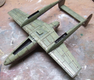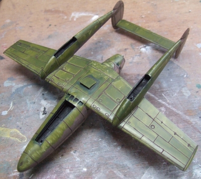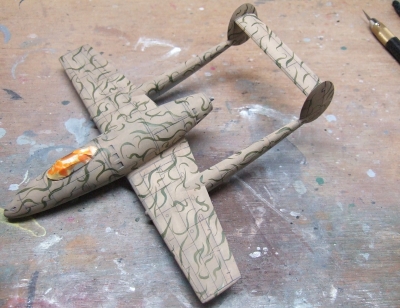 全面銀と違って塗り分け有るんですけど、いつもの筆塗りで行くので工程はさくさく進みます。上面にしても下面にしても、最終的に到達する色合いよりも暗い色合いで塗り始めるのはお約束ですね。この下地の色次第で仕上がりがほぼ決まっちゃうので、いつもここで悩みますけどね。まぁ、失敗したら塗り直せばよいだけの話ですし。 |
