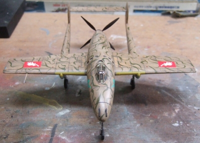・満州バージョンに続いてタイ空軍仕様の一機です。「同じ機体を同時に作って飽きないのか」とかたまに云われたりしますけど、モチベーションが持続してるなら一粒で二度美味しい的な気分で作業は続行できるもんです。割と。そんな訳で銀色機体を作ったその日の内に、このタイバージョンは塗りに入っちゃったりする訳ですよ。まぁ、工作はほぼ終了してて塗装メインなんで随分と気が楽なのではありますが。