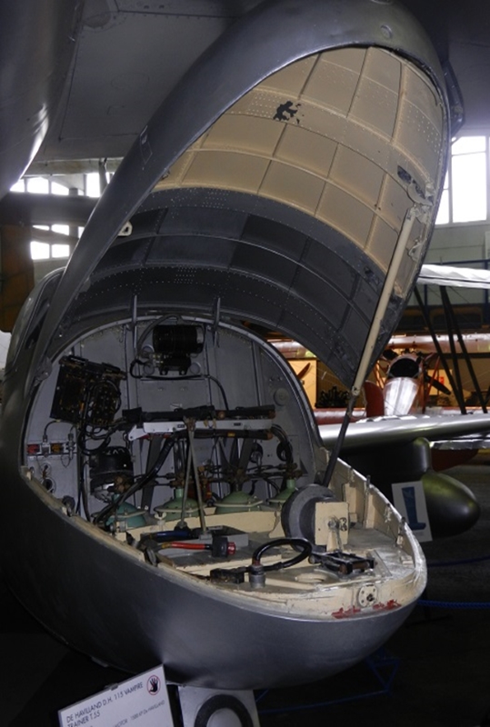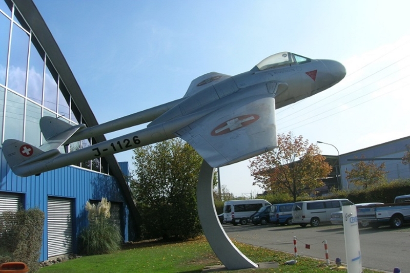 物持ちの良いスイスはバンパイアがお好みのようで、チューリッヒ郊外のデューべンドルフ にあるスイス空軍博物館では、ゲートガードを務めさせる上に、コクピット周囲の木製合板が