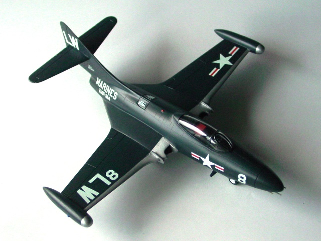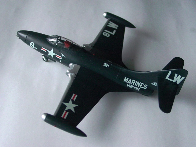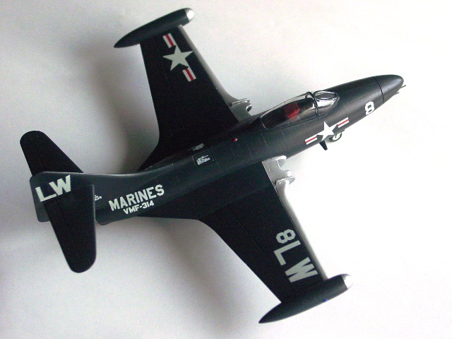 エアインタークはなぜか上下分割の別部品で、仮組みしても隙間ガタガタで全然あわない。ここは実機の形など考えずに瞬間接着剤や少量のパテでなんとか整形する。ここにある気流制御の板も充分に厚いが、これを薄くするとまた穴があくので、もちろんそのまま接着する。キットの状態を受け入れればよいのである。ところでその主翼だが、キットは上方に折り畳んだ状態にも組めるようになっている。そうはなっていても断面が見える部分の作りこみはゼロだし、そもそも私の好みでもないので、スッと伸ばした状態に組んである。 |
