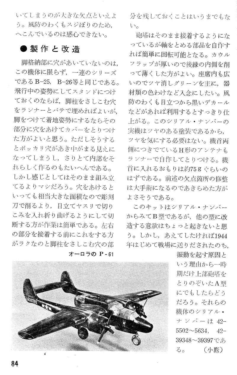 今回は 「その4」として  74pから94pまで  「カーチス P-36」、「ベル P-39 エアラコブラ」、「ノースロップ P-61 ブラックウィドゥ」、「ブリュースター・バッファロー」 「アメリカ軍用機の塗装考」を再録させていただきます。,