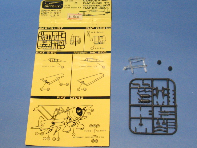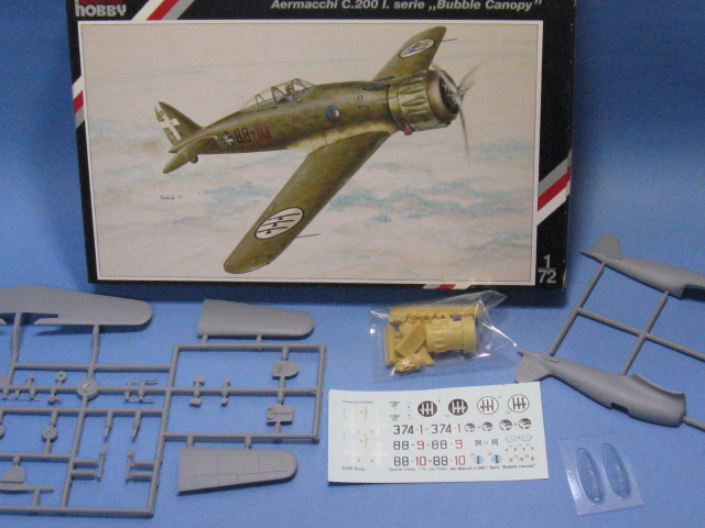 | レベルから1/72スケールのファイター・シリーズとして、第一次大戦の複葉機から第二次大戦までの各国を代表する戦闘機などが発売されていました。キャノピーが可動するイギリス・レベル版のMe262や、デカール3種が付いたタカラ版などが発売されています。前に昔の作品を投稿しましたが、今回は好きなイタリアのマッキMC.200サエッタ(電光)に再度手を入れて作ってみました。反転する箱絵が衝撃的でしたが、当時のスタンダードでシートとパイロットフィギュアが付いていますが脚収容部は筒抜けで細部も省略が目立ち、一般的でないスピナーが付いたプロペラになっています。 |