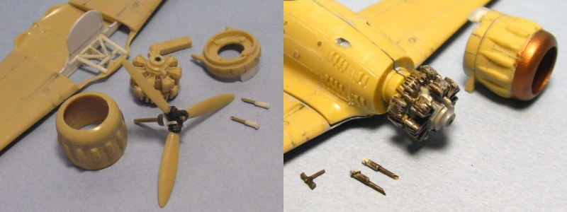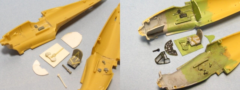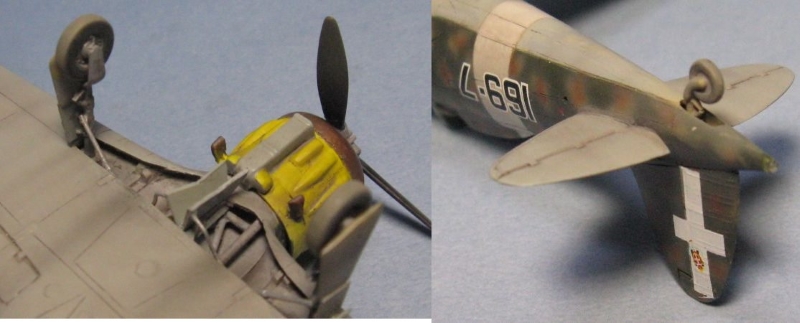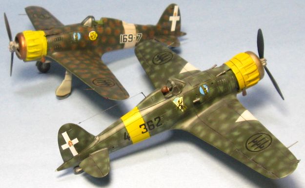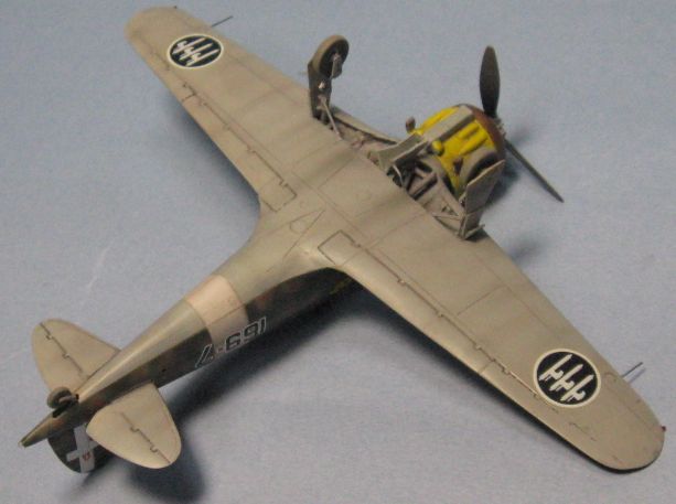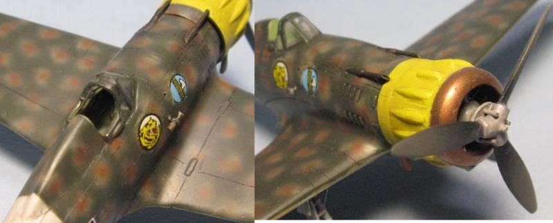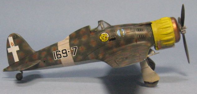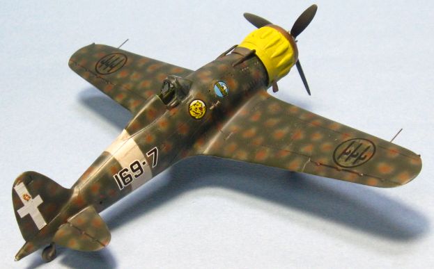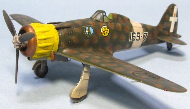 今回はイタリアの資料本を見て全面凸モールドを正しくスジ彫りし直して、見えなくなるコクピットや脚もディテールアップし、タウロなどの別売りデカールを使って虎マークの第54ストロモ(航空団)に所属した第16グルッポ(大隊)、第169スクアドリグリア(中隊)に仕上げました。1941年3月にMC.200を装備して編成され、第16グルッポに配属されてシシリー島の基地から地中海の写真偵察を任務としています。 |