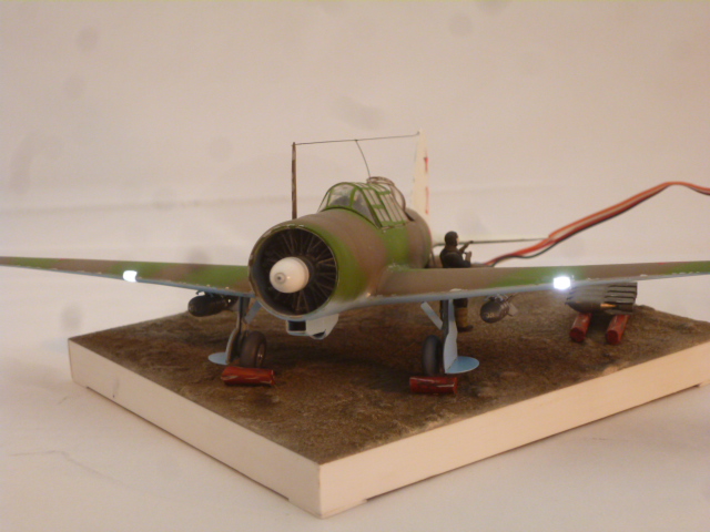 これもエンジンにモータ翼にランディングライトとこの機体にはなぜか翼単灯、尾灯の航行灯が見当たりません。