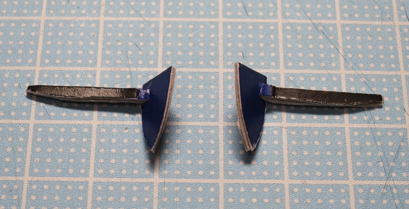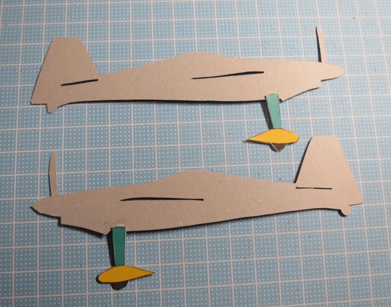ファルケン号のプロペラは上の写真のように3枚プロペラなので、下のようにプロペラ部品から2組作って、機首のプロペラの左右に貼り付けよう。これで、3枚プロペラが簡単に再現できる。