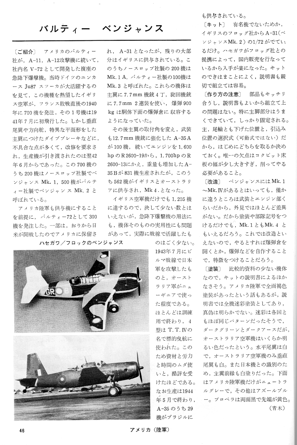 (第10回)1966年号その4 (74p~94p) 「カーチス P-36」、「ベル P-39 エアラコブラ」、「ノースロップ P-61 ブラックウィドゥ」、「ブリュースター・バッファロー」 「アメリカ軍用機の塗装考」