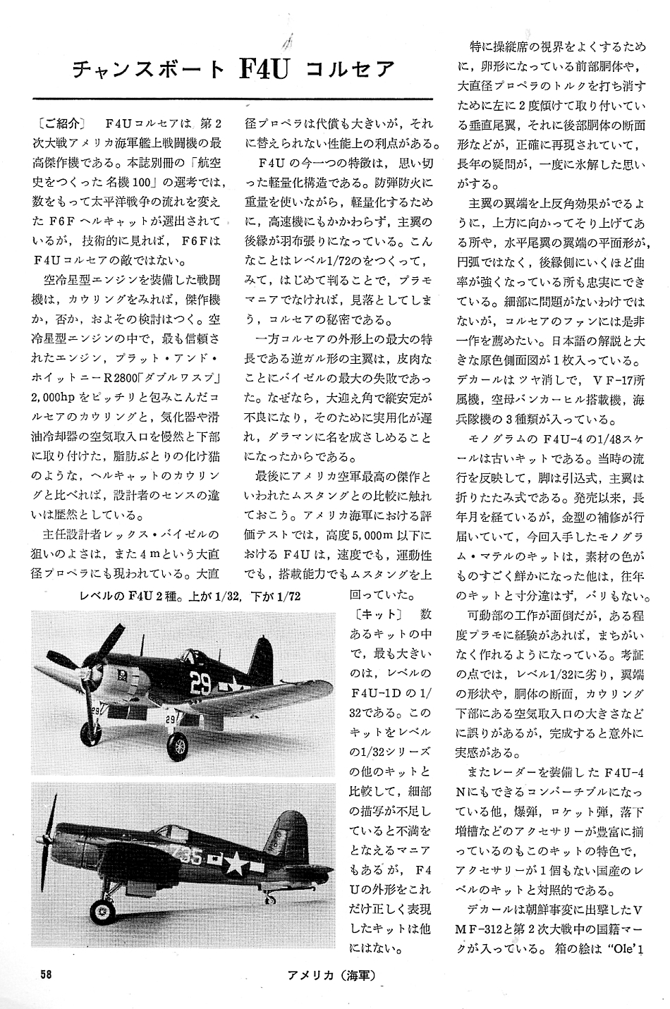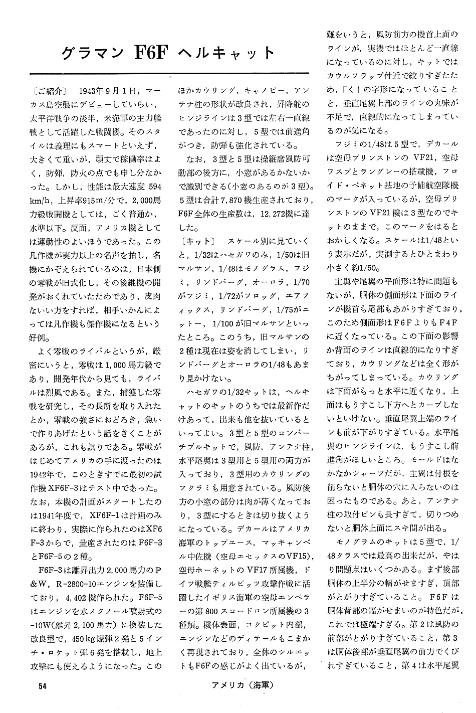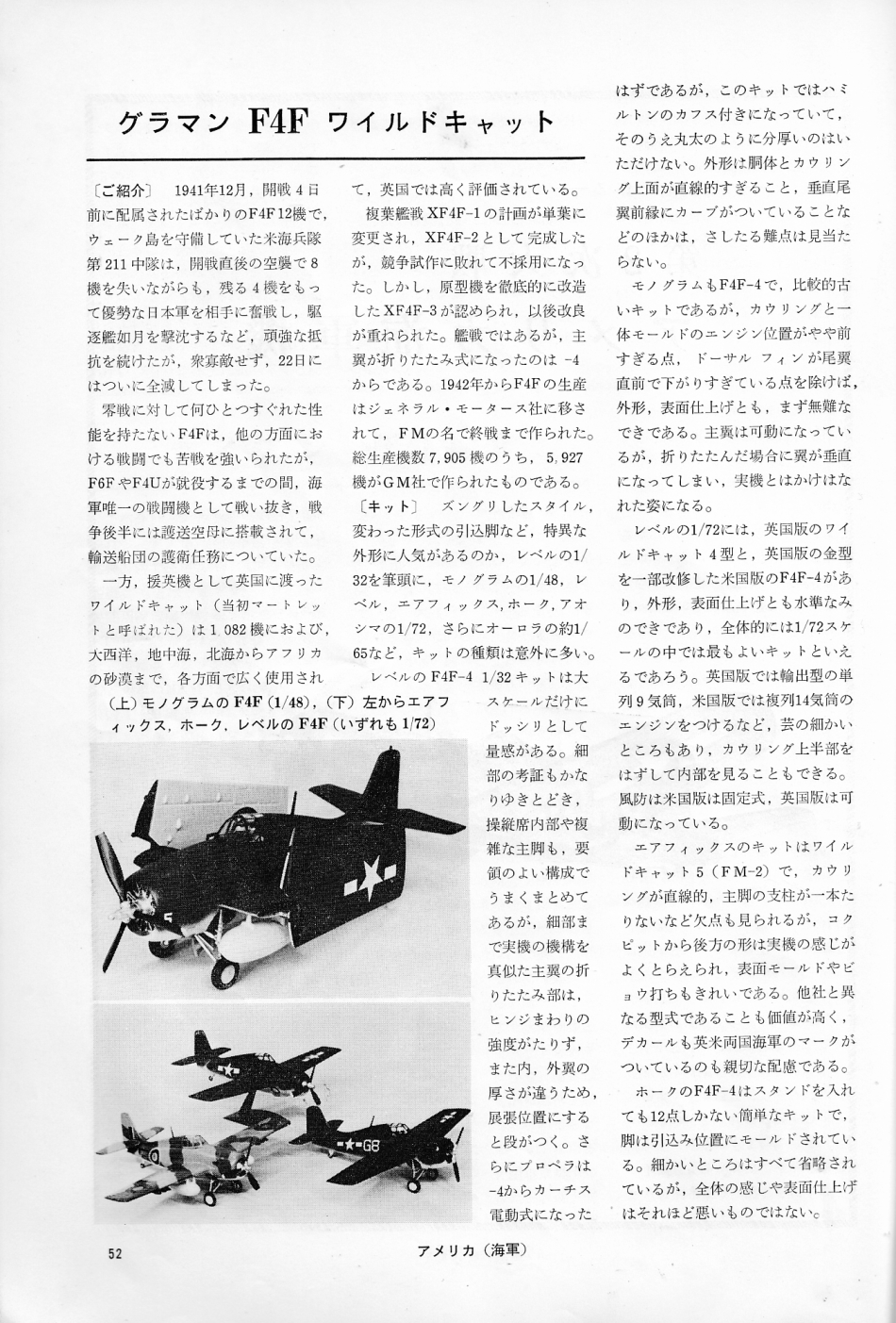 (第9回)1966年号その3 (48p~73p) 第2次大戦アメリカ戦闘機 海軍機 「グラマン F-4F ワイルドキャット」、「グラマン F-6Fヘルキャット」、「チャンスボート F-4Uコルセア」