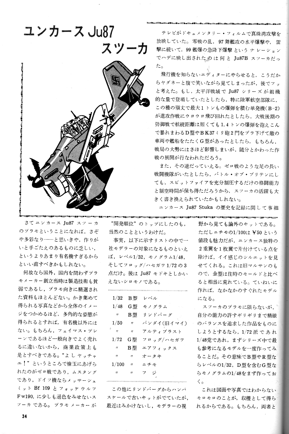 今回は1973年春季号 の第5回として、ユンカースJu87スツーカを再録させていただきます。