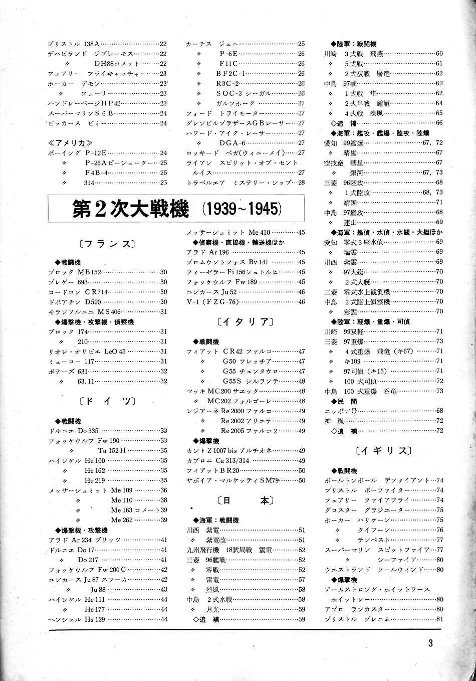 | (第10回)1966年号その4 (74p~94p) 「カーチス P-36」、「ベル P-39 エアラコブラ」、「ノースロップ P-61 ブラックウィドゥ」、「ブリュースター・バッファロー」 「アメリカ軍用機の塗装考」 |