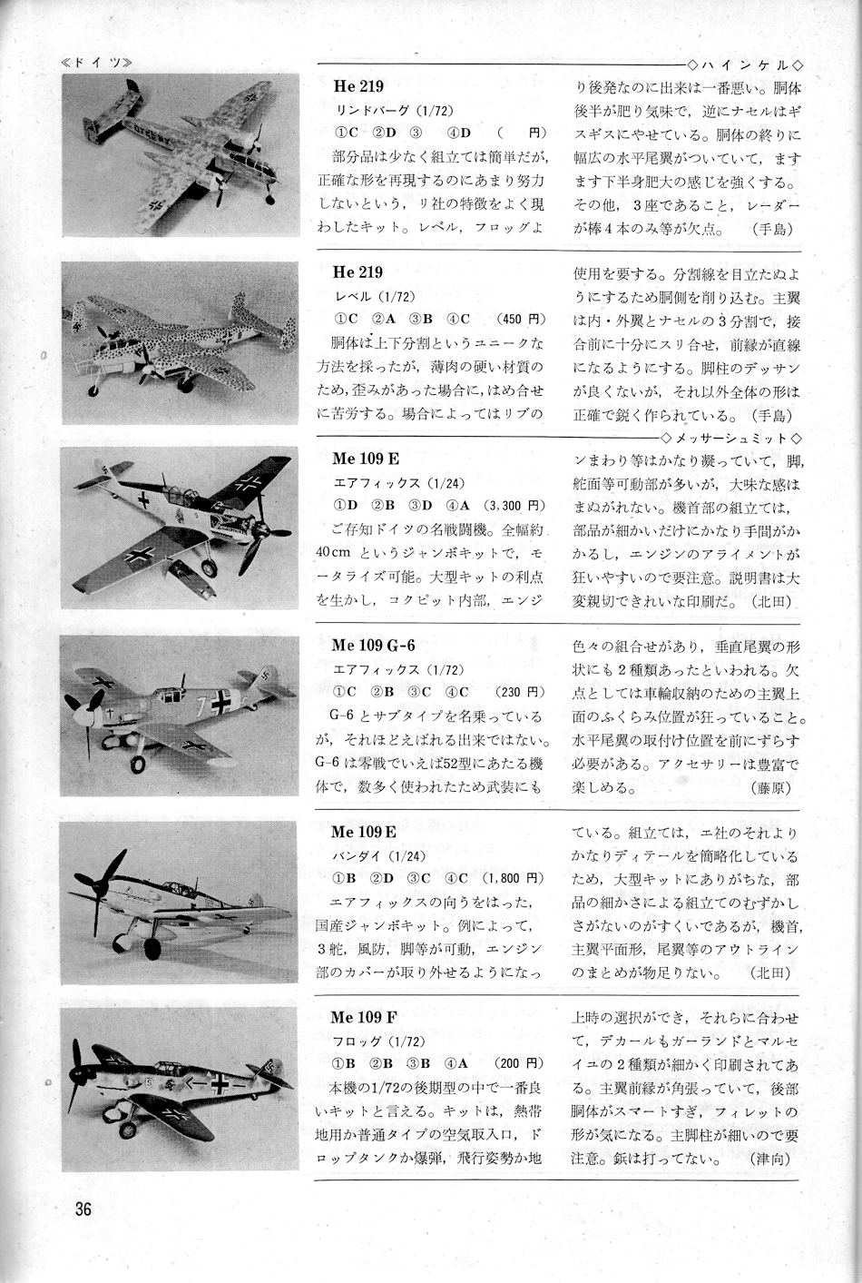 | (第41回) 1964年号 プラモガイド (その3)ドイツ機,日本機 |