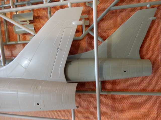 アレスティングフックC18とコクピット後方の隔壁A15は,胴体左右を接着した後でも取りつけられます。そのため,塗装の工程が少しだけ楽になります。