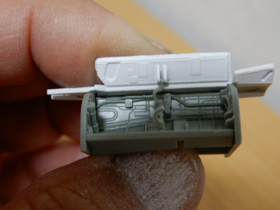 胴体左右の接着の際,挟み込む部品がたくさんあります。部品の精度はよいのですが,塗装した部品を挟み込むので,取りつけが,タイトになります。十分に調整した上で胴体左右を接着することをおすすめします