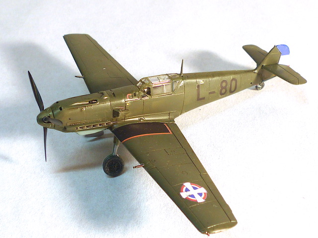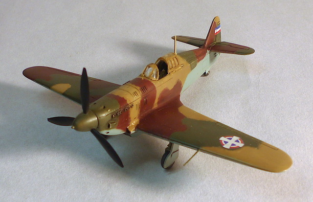 12月号に投稿したものは酷い出来だったので作り直しです。某中古屋で手に入れました。古い簡易インジェクションで主翼の取り付けにはフェアリングの段差の処理等大変でした。このキットはi f(イフ)のついたパケージで、IK-3を使わなかった各国の国章が入っている架空の機体でした。肝心のユーゴスラヴィアの国章は入ってません。そのため主翼上面の国章はほかからの流用で下面は筆書きです。