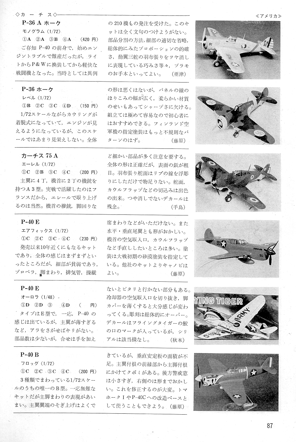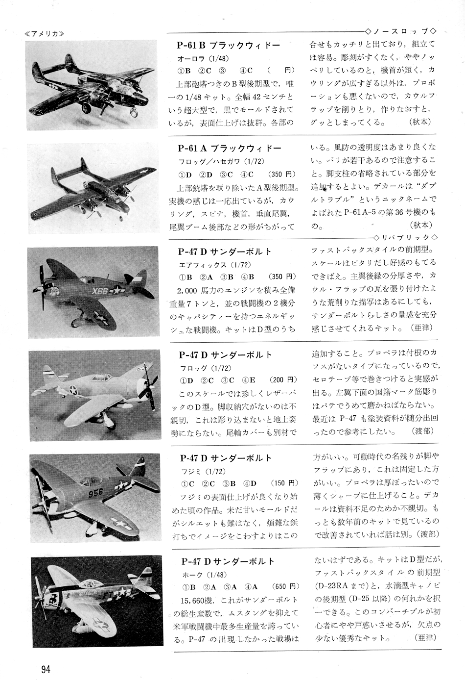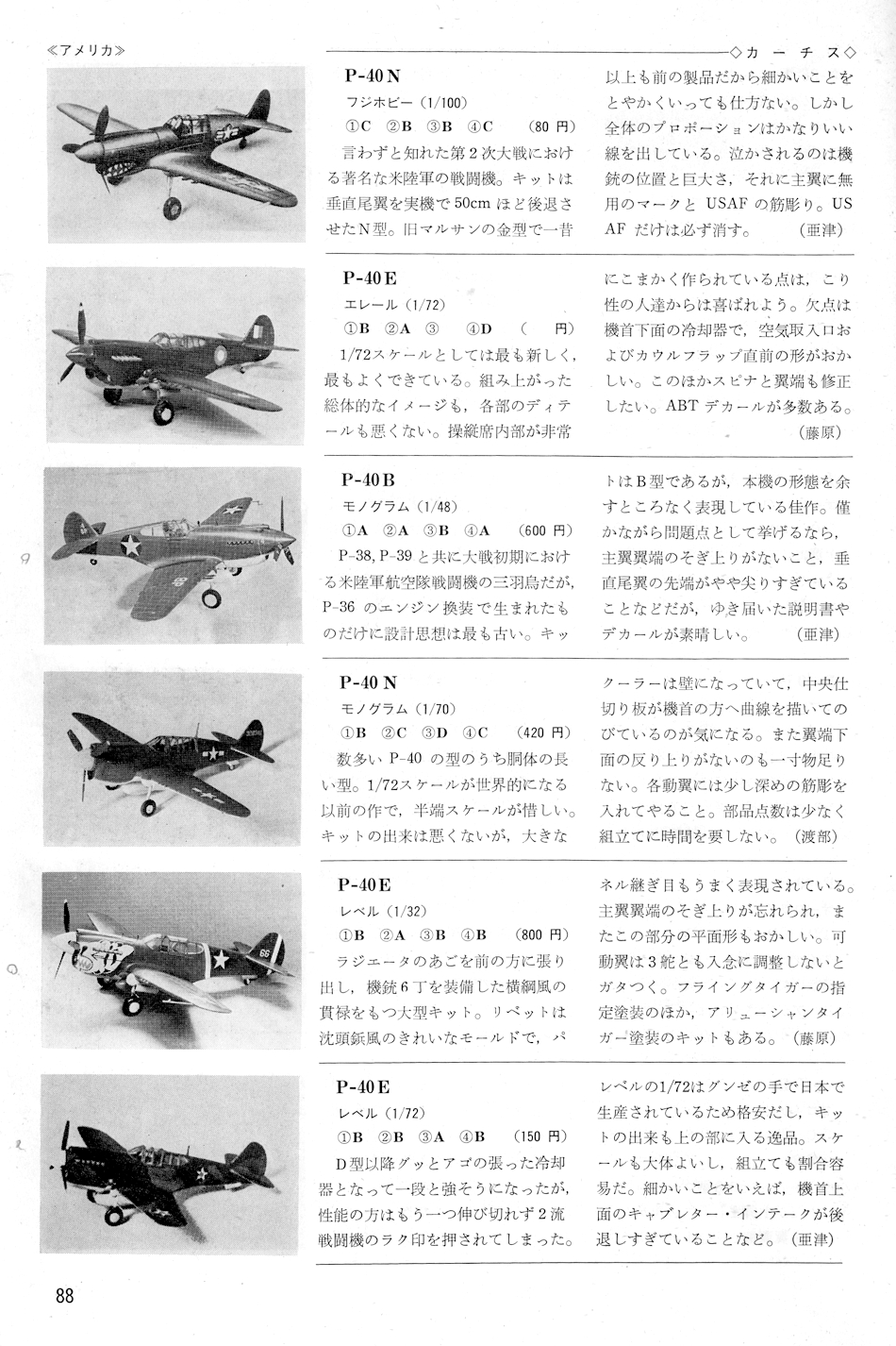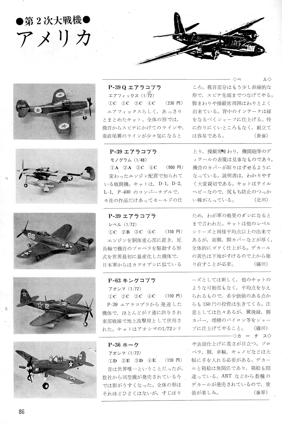 | (第10回)1966年号その4 (74p~94p) 「カーチス P-36」、「ベル P-39 エアラコブラ」、「ノースロップ P-61 ブラックウィドゥ」、「ブリュースター・バッファロー」 「アメリカ軍用機の塗装考」 |