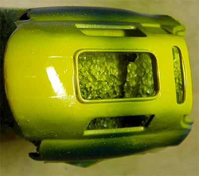 (写真11) 乾燥したら、マスキングゾルの境目をカミソリでなぞり、きれいにマスキングゾルをはがして、塗装は出来上がりです。