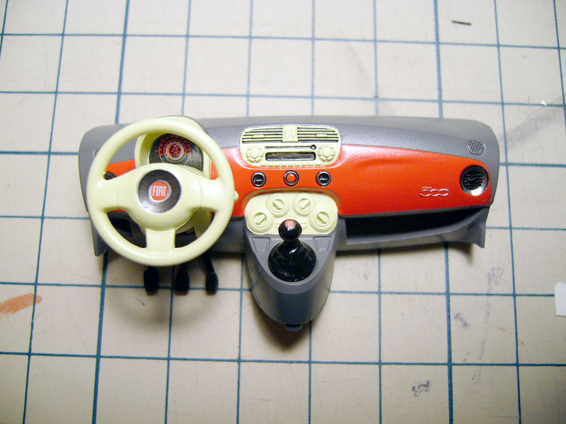 私の場合ここから少し変わってまして、窓ワクやモールを黒で先に塗装し、ヘッドライトやテール等のレンズパーツを先に取り付けます。取り付けにはメタル