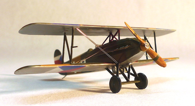 向かって左側二重張り線の一本が外れてしまい修復しようとしたらヨレてしまいみっともなくなりました。落ち着いたら修復します。同じく左側下翼の下面マスキングテープ取り忘れです。ご愛嬌ということで・・・