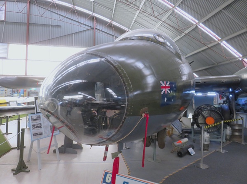 2023年9月撮影。キャンベラ20型はオーストラリア向けの爆撃型B.2です。2機が輸入され、48機がオーストラリア政府航空機工場(GAF)でライセンス生産されました。展示機はGAF製造です。ハッチが開放され、機内に入る事が出来ました。