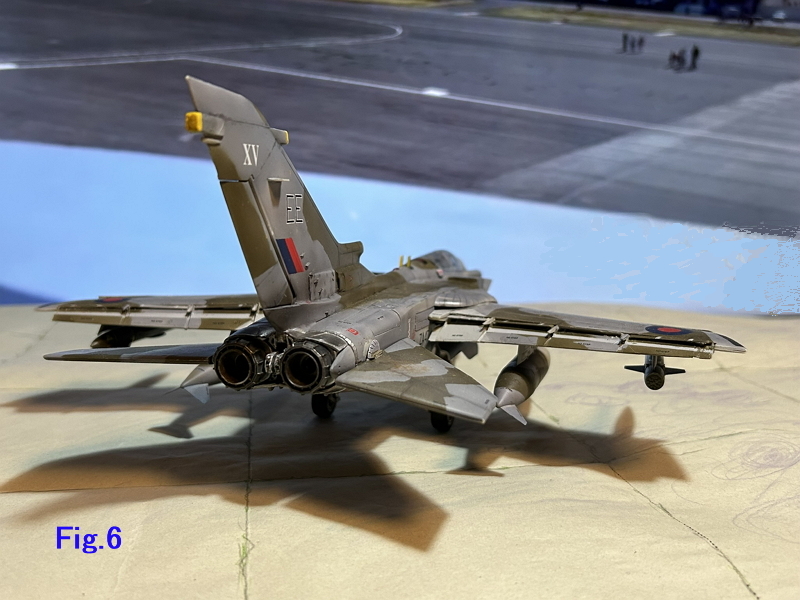 蛇足ですが、アフターバーナーは、透明プラ板で円錐を作り、蛍光色でグラデ塗装、硬質のスポンジを切り抜いて波紋を作成、末端は手芸用コットンを解してぼかしました。