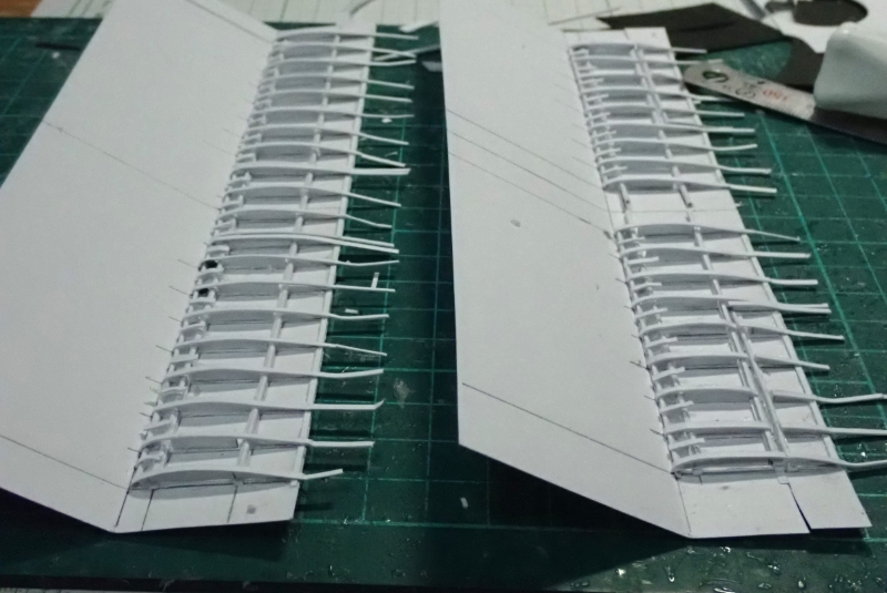 翼の内部にはリブを設けることで外皮の撓みが自然に表現できます。直線翼なのでリブは全て同じ形です。