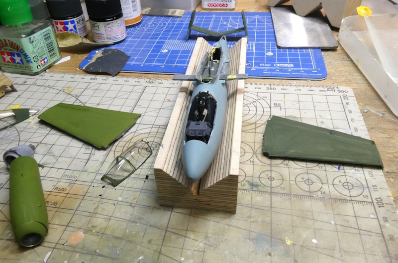 He162は、さすがタミヤで、小さな機体がサクサクとストレスなく組みあがります。金属パーツとポリキャップの活用が上手い。