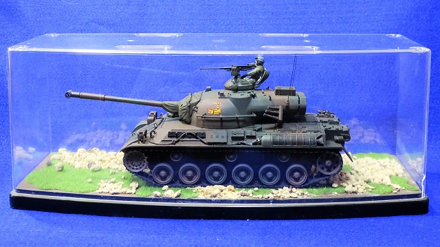 完成品はこのような情景にして、保管することにしました。 背景に演習場のコピーでも貼ったらもっと雰囲気がでるでしょうか