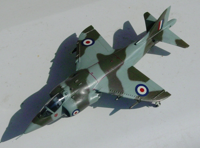 似たような不連続は主翼上面と胴体背部にもあって、ここもガリガリ削っておいた。もう一つ、前脚・後脚のカバーは地上でも閉まっていることが多い。ここは閉じた状態で組んだ。これだけの作業をすると「素組み」とは言いにくく、「多少手を加えました」といったところか。ほかにも胴体上面の合わせ目とか、風防後端とか、コチョコチョと工作したが、これらは特に説明するほどのものではない。 |
